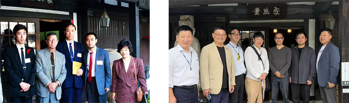 Photo/The left and right : Comparison of the delegations of Jingdezhen Ceramic University visiting the studio of "Living National Treasure" Kato Kobei in Japan 36 years ago and now.